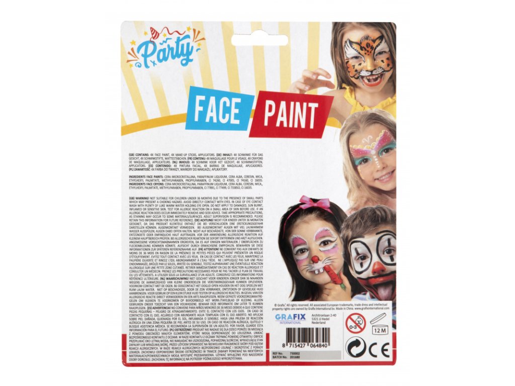 Barvy na obličej, 4 různé barvy