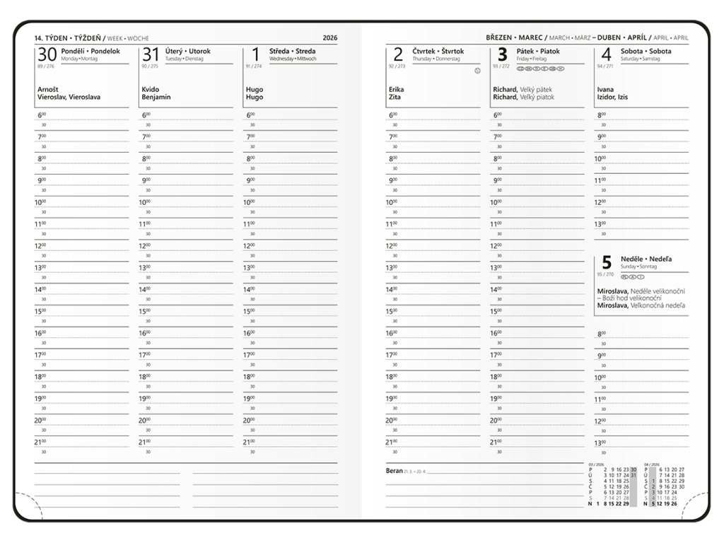 Týdenní diář 2026 - Oskar - Luxi - A5 - bordó
