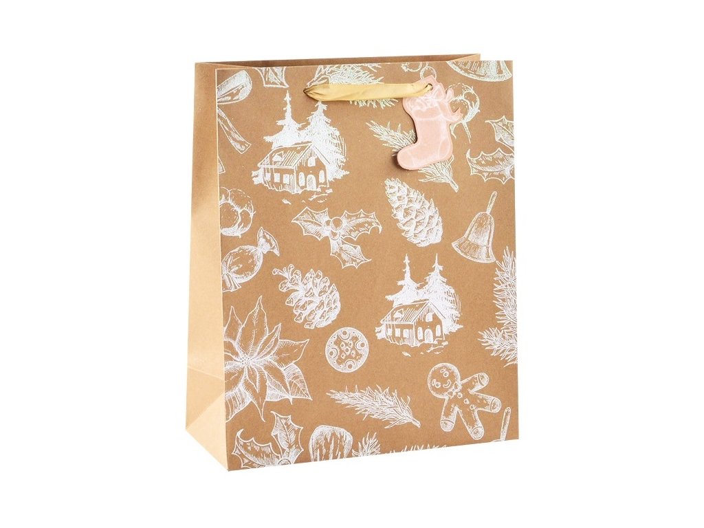 Taška dárková vánoční s glitrem L 26 x 32 x 12 cm 12539