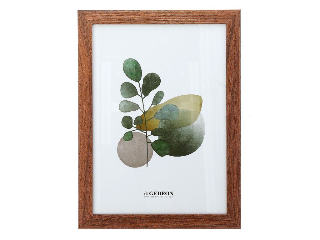 Rám je vyroben z vysoce kvalitního profilu, jehož povrch věrně imituje strukturu a kresbu přírodního dřeva v teplé, hnědé barvě. Matná úprava profilu eliminuje nežádoucí odlesky světla a dodává rámu vytříbený charakter. Tento detail dodá každému interiéru útulnou a elegantní atmosféru.