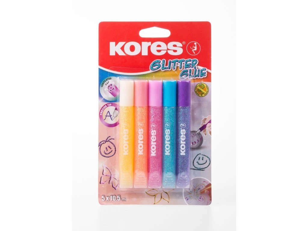 Třpytivé lepidlo pastelové Kores Glitter glue pastel 10,5 ml x 5 barev
