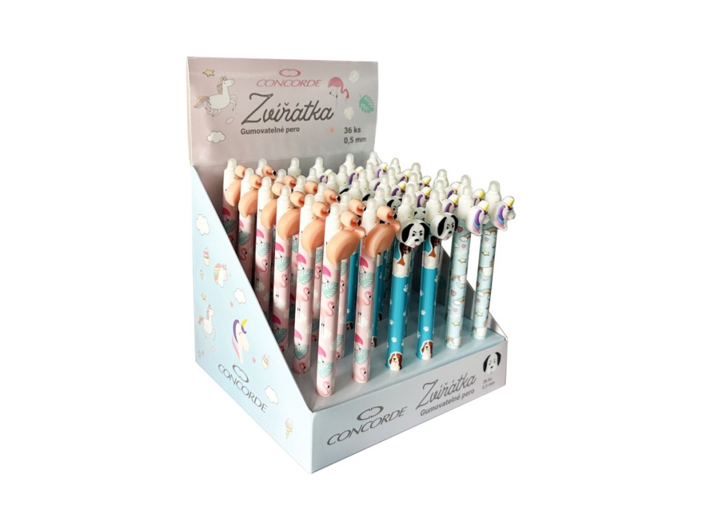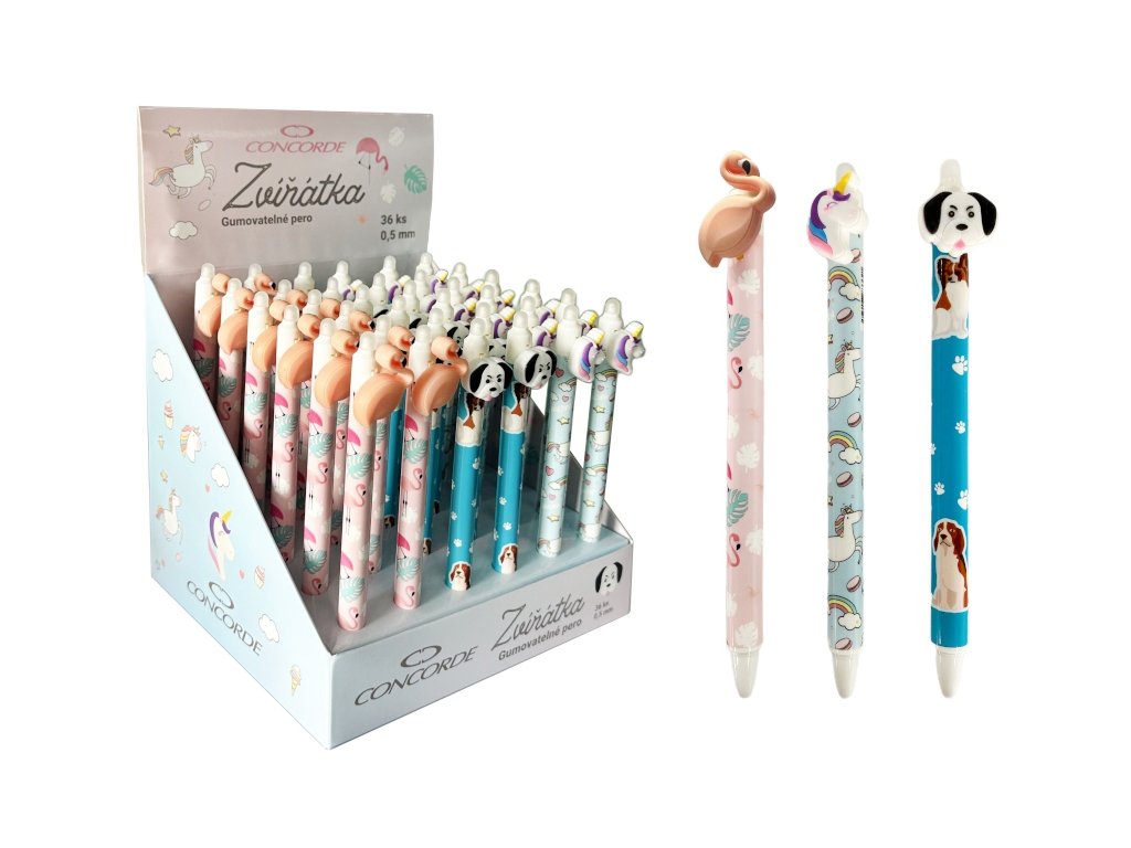 Gumovatelné pero CONCORDE Zvírátka, modrá nápln, 0,5mm