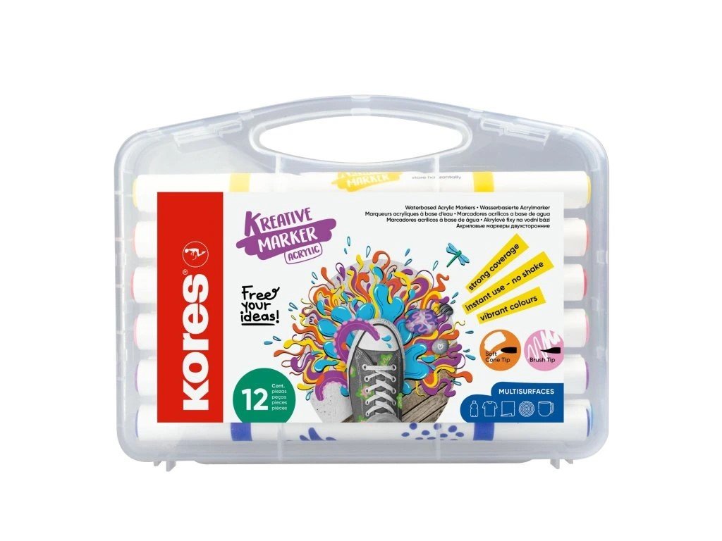 Akrylové popisovače Kores Kreative Marker set 12 barev oboustranný hrot 2 v 1