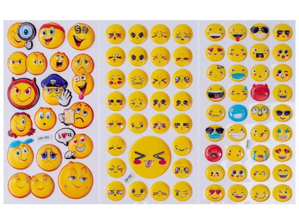 Jedná se o balení 6 archů konvexních samolepek s motivem smajlíků. Každý arch má rozměr 10 x 22 cm. Samolepky mají konvexní tvar, což jim dodává 3D efekt. Velikost samolepek je od 1,8 do 4 cm. Emoji jsou ideální pro zdobení sešitů, deníků, alb, nebo pro kreativní tvoření.