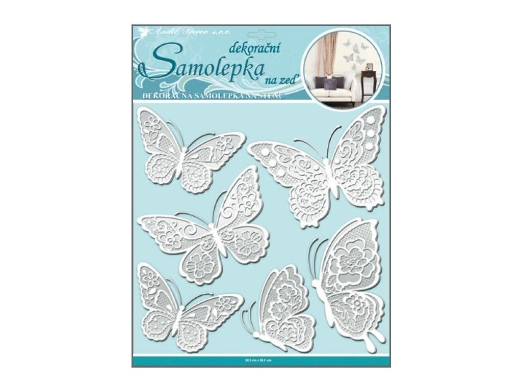 Samolepka na zeď motýli s bílými krajkovými křídly 10068, 40x31cm - 2 POSLEDNÍ KUSY -