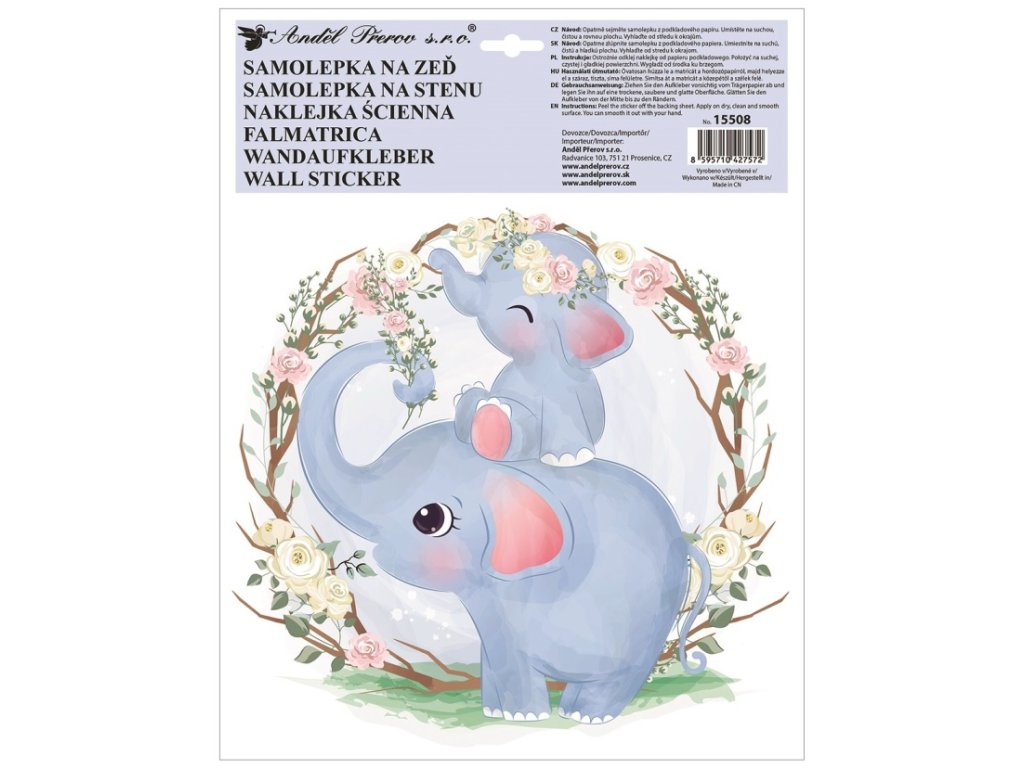 Samolepka na zeď barevná Slon 30 x 42 cm 15508