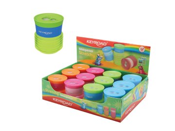 plastové ořezávátko pro ořezávání tenkých (8 mm), silných (11 mm) a extra silných (16 mm) tužek s velkým zásobníkem na odpad a víčkem, rozměr cca 6 x 5,5 x 3,2 cm, mix barev