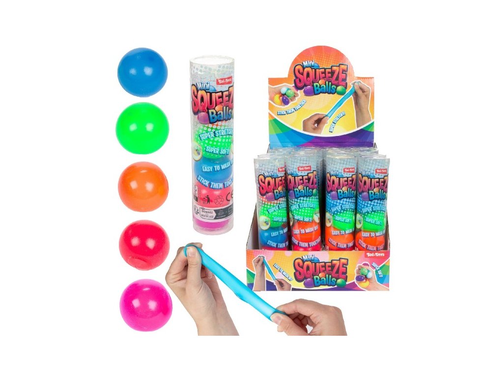 Míček 5ks antistresový mačkací sliz 3cm v tubě 4x18cm 20ks v boxu