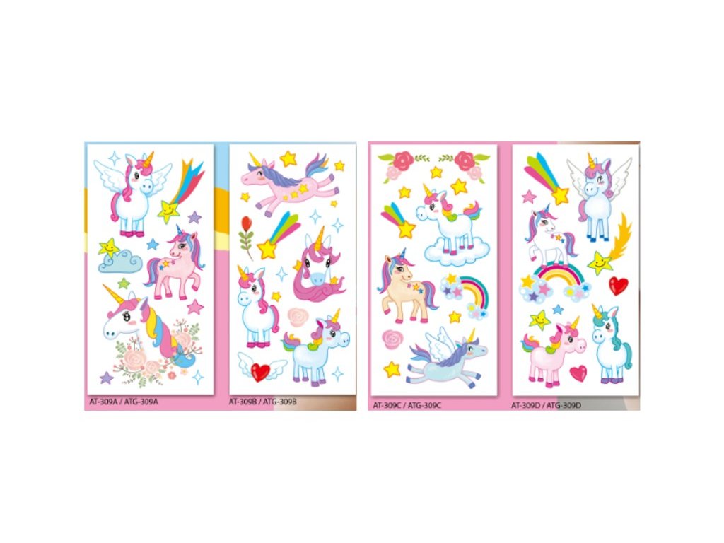 Obtisky vodové barevné dětské 9x19cm-09 unicorn