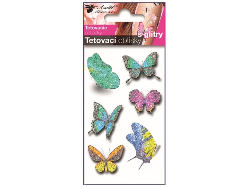 Tetovací obtisky Motýli zelení s glitry 10,5 x 6 cm 16059