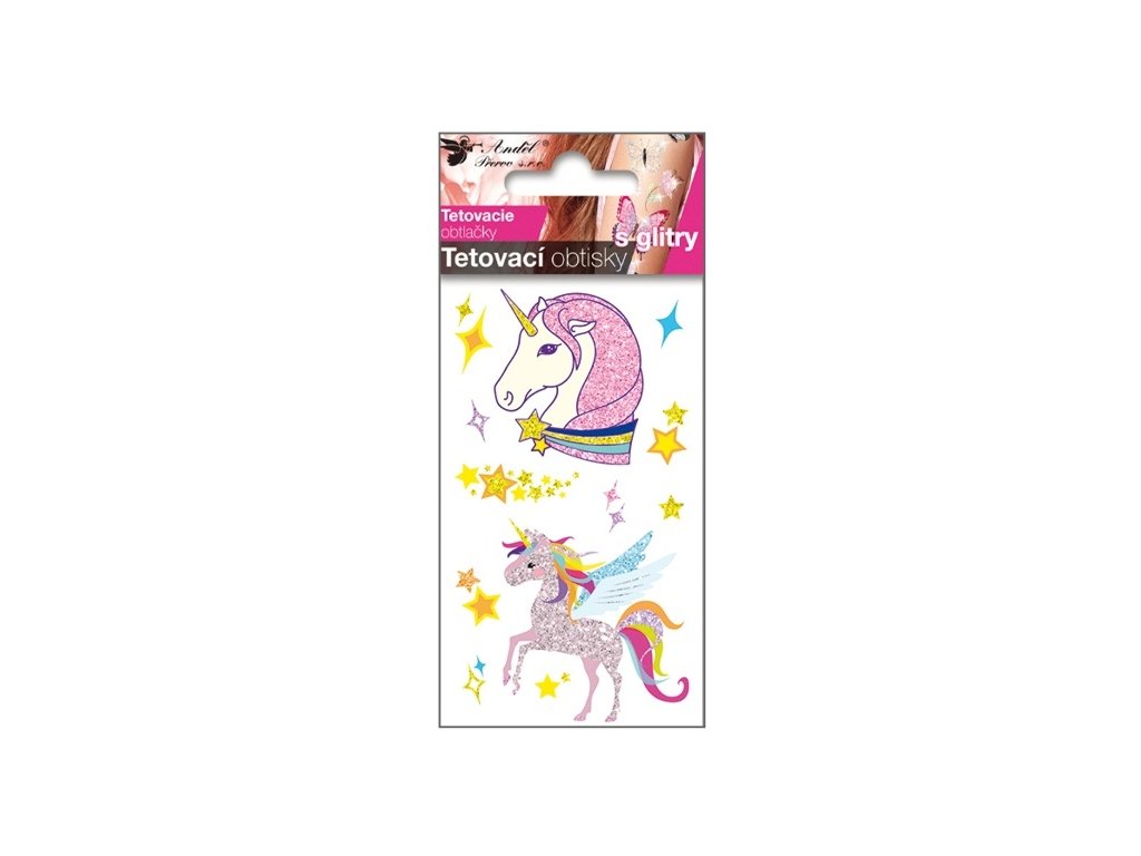 Tetovací obtisky s glitry 10,5x6 cm-jednorožci 1123